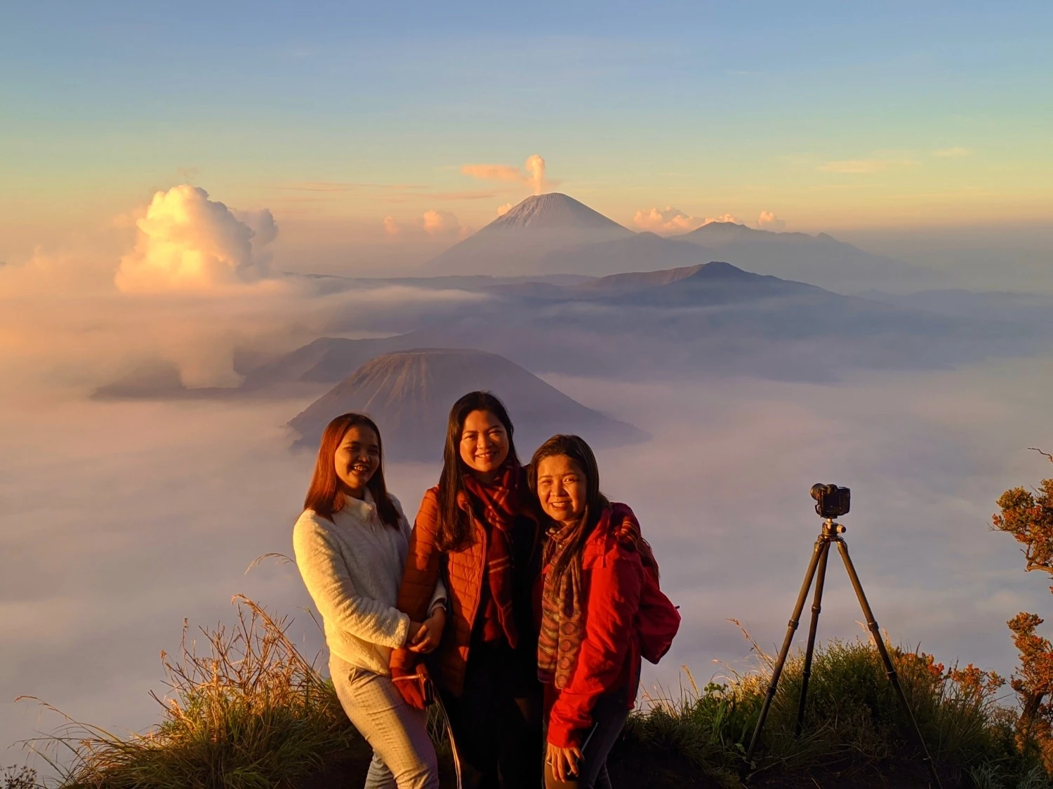 Sunrise over Tengger Caldera and sacred Hindu ceremonies